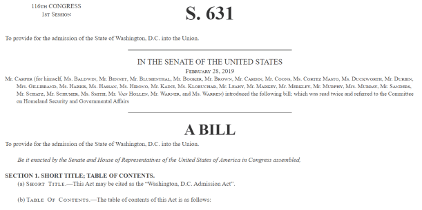 S.631 – the Washington, DC Admission Act – currently has 42 cosponsors in the 116th Congress (2019-2020). Do your senators support DC statehood.